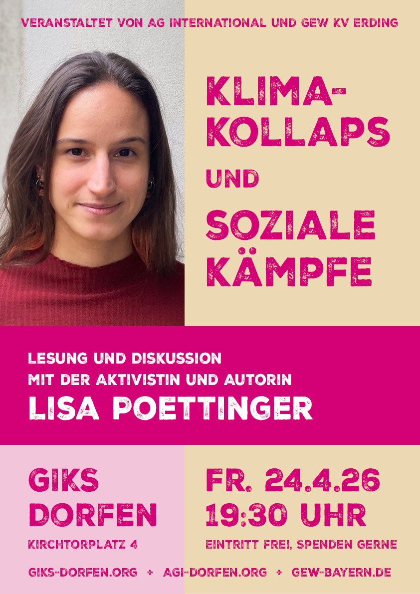 | 24.04.26 | 19:30 | AGI-Veranstaltung Klimakollaps und soziale Kämpfe Dorfen, GIKS |